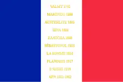 8. « Décision n°12350/SGA/DPMA/SHD/DAT du 14 septembre 2007 relative aux inscriptions de noms de batailles sur les drapeaux et étendards des corps de troupe de l’armée de terre, du service de santé des armées et du service des essences des armées, Bulletin officiel des armées, n°27, 9 novembre 2007 » (deutsch: „Bestimmung n°12350/SGA/DPMA/SHD/DAT vom 14. September 2007 über das Aussehen der Inschriften auf den Fahnen und Standarten der Truppenkörper des Heeres, des Sanitätsdienstes und der Treibstoffversorgungsbranche. Veröffentlicht mit dem offiziellen Armeebulletin Nr. 27 vom 9. November 2007“)