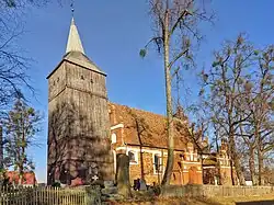 Die Grundmauern der ersten Kirche in Rosengart wurden wohl bereits im 14. Jahrhundert gesetzt.[6] Im Jahre 1604 wurde die bis heute erhaltene und römisch-katholische St.-Matthäus-Kirche in Backsteinbauweise errichtet und vom ermländischen Bischof Simon Rudnicki geweiht. Der Kirchturm in Holzbauweise stammt aus dem 18. Jahrhundert, sein Dach aber erst – nach einem Brand – von 1935. Chor, Sakristei und Vorhalle wurden 1912 angebaut.