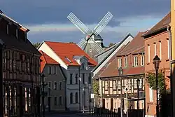 - Windmühle auf dem ehemaligen Burgberg, wo bis ca. 1466 noch das Schloss der Fürsten von Werle stand (1227 als Burg erwähnt), wurde als Galerieholländermühle zwischen 1802 und 1825 erbaut und 2006 aufwändig restauriert. Sie hatte seit 1479 mehrere Bockwindmühlen als Vorgänger und wurde zuletzt zwischen 1929 und 1991 als Jugendherberge genutzt.