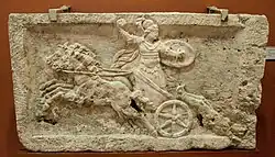 - Im 3. Jahrhundert weihte der Sklave Eutyches seinen Stein dem Dobras, einem Reitergott, der auf dem dazugehörigen Relief mit wehendem Militärmantel einen Gegner niederreitet.[27]