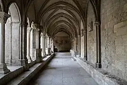Auf der Südseite befand sich bis 1792 das Kloster Saint-Trophime mit dem in zwei Etappen erbauten und heute noch bestehenden Kreuzgang. Während der nördliche und der östliche Gang zwischen 1160 und 1180 im romanischen Stil entstanden, wurden der westliche und der südliche Teil erst im 14. und 15. Jahrhundert im gotischen Stil erbaut.
