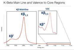 Zur Anregung werden üblicherweise Elektronen oder Röntgenphotonen ausreichender Energie benutzt, jedoch gibt es auch Röntgenquellen, die ihre charakteristische Röntgenstrahlung durch die Abbremsung von Protonen und/oder Ionen erzeugen. Bei einer Messung wird zumeist nur ein bestimmter Energiebereich entsprechend den zu beobachtenden Elektronenübergängen gewählt. Besonders aussagekräftig sind hierbei Übergänge, die den Energien der Valenzelektronen (Valence to Core, kurz VtC/V2C) entsprechen. Diese Übergänge finden sich bei Messung der -Linie als kleiner Hügel auf etwas höheren Energien als der Haupt-Peak (Bild 1). Aus diesem Grund sind die K-Linien auch die am häufigsten untersuchten Emissionslinien. Die genauen Elektronenübergänge sind in Bild 2 einzusehen.