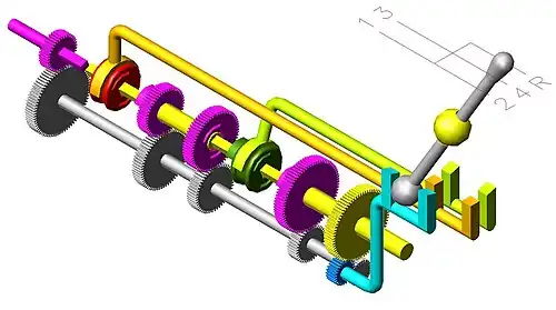 - Schaltgetriebe zwischen Abtriebswellewelle und Vorgelegewelle ein Zahnrad zwischengeschaltet und beim