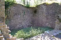 Reste der vermuteten Burgkapelle vor der Mauer zwischen Vor- und Hauptburg