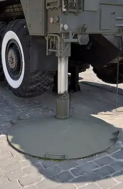 Die Raketen waren auf den geländegängigen MAZ-547W-12×12-LKW platziert und wurden von diesem gestartet. Der Systemindex der Sowjetarmee für dieses Fahrzeug lautete 15U106. Jedes Fahrzeug war mit einem 15Ja107-Transport- und Abschussbehälter mit einer Rakete bestückt. Der LKW wurde von Minski Awtomobilny Sawod entwickelt und hatte eine Besatzung von drei Personen. Der LKW verfügte über eine Reifendruckregelanlage, ein Navigationssystem und ein Führerhaus mit ABC-Schutz.[4] An der Fahrzeugfront befindet sich der Motor mit dem Führerhaus. Als Motor kam ein luftgekühlter Dieselmotor mit 549 kW (746 PS) Leistung zum Einsatz. Unbeladen (ohne Rakete) hatte das Fahrzeug eine Länge von 15,48 m, eine Höhe von 2,84 m und war 3,16 m breit.[5] Unbeladen betrug das Fahrzeuggewicht rund 40,3 Tonnen. War das Fahrzeug mit dem Transport- und Abschussbehälter für die Rakete beladen, betrug die Länge 19,32 m und die Höhe 4,35 m.[6] Das Fahrzeuggewicht stieg auf rund 85 Tonnen.[7] Beladen betrug die maximale Fahrgeschwindigkeit rund 40 km/h. Vom Startfahrzeug konnten die Raketen direkt in der Basis, bei eingemessenen Geländepunkten entlang einer festgelegten Patrouillenroute oder von beliebigen Punkten im Gelände gestartet werden.[1] Das Fahrzeug war mit allen nötigen Systemen ausgestattet, um die Rakete in andauernder Kampfbereitschaft zu halten, Startvorbereitungen zu treffen und sie abzufeuern. Nach dem Raketenstart konnte das Fahrzeug mit einer neuen Rakete beladen werden.