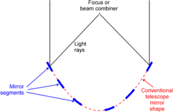 Wie im obersten Bild gezeigt, darf die Fläche eines Parabolspiegels aus Gründen der Windlast auch durchlöchert sein. Es ist sehr schwer, die Parabolform eines sehr großen Spiegels (siehe Radioteleskop Effelsberg) beim Bewegen und Kippen sicherzustellen. Feste Spiegel wie beim Arecibo-Observatorium schränken die Beobachtungsmöglichkeiten zu stark ein, weshalb man zu Anordnungen separater Einzelantennen übergeht. Dabei werden die blauen Segmente im obersten Bild zu Einzelparaboloiden verformt und in gegenseitigem Abstand mit jeweils einem separaten Empfänger im Fokus gebaut. Aus deren Beiträgen wird im Computer das Bild rekonstruiert, wobei mehrere Probleme zu lösen sind: