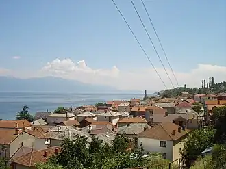Ausblick über das Dorf und den Ohridsee Richtung Südosten (2013) | |||||