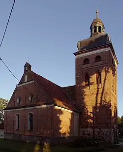 Die römisch-katholische Kirche in Radziejewo ist ein gotisches Backsteinbauwerk, das wohl auf Grundmauern eines Vorgängerbaus errichtet und im Jahre 1583 von Bischof Martin Cromer geweiht wurde. Zwischen 1630 und 1854 wurde sie mehrfach verändert und auch erweitert, 1854 wurde der Turm angebaut. Die barocke Innenausstattung stammt im Wesentlichen aus dem 18. Jahrhundert.[6] Eingepfarrt ist der Ort Wola Lipecka (Landmannsdorf), Filialkirchort ist Lechowo (Lichtenau). Die dem Abt St. Antonius der Große geweihte Pfarrkirche untersteht dem Dekanat Orneta (Wormoditt) (bis 2022 Dekanat Pieniężno) im Erzbistum Ermland.[7]