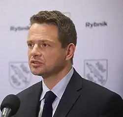 Rafał Kazimierz Trzaskowski (* 17. Januar 1972 in Warschau)[1] ist ein polnischer Politiker der Bürgerplattform (PO) und seit 2018 Stadtpräsident von Warschau.