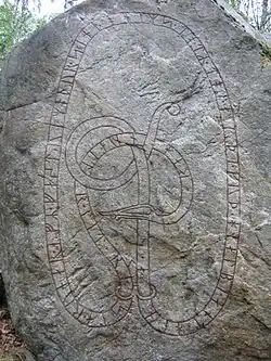 - ↑ U 112; Mitte 11. Jahrhundert, vgl. Enoksen 131; Omeljan Pritsak 376; rundata; 1594 von Bureus erstmals bekannt gemacht