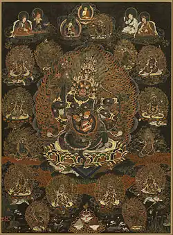 Rahula ist ein Dharmapala (Schützer der Lehren Buddhas) des tibetischen Buddhismus. Der Schützer Rahula ist ein sogenannter „eidgebundener Schützer“ (tibetisch Dam Chen), ein Geistwesen, das im 8. Jahrhundert von dem großen tantrischen Meister Padmasambhava unterworfen und unter Eidesleistung an den Dharma gebunden wurde. Rahula ist mit den Lehren des Dzogchen verknüpft und bewahrt diese nicht nur gegen Angriffe von Außen, vielmehr noch bewahrt er diese hohen Lehren vor Verfälschung durch Falschauslegung und Falschkommentierung von Dzogchen-Praktizierenden selbst. Überdies gilt Rahula als persönliche Schutzgottheit des 5. Dalai Lama Ngawang Lobsang Gyatso, der selbst ein bedeutender Dzogchen-Meister war.