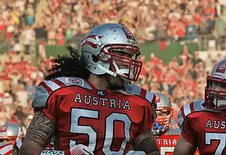 - ↑ American Football: 45-Mann-Kader Österreichs für Heim-EM. In: Tiroler Tageszeitung. 30. Mai 2014, abgerufen am 21. September 2021.