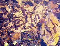 - ↑ Beispielsweise Übersicht bei Heribert Wolsbeck, Hubert Laufer & Helmut Genthner: Grasfrosch, Rana temporaria Linnaeus, 1758. In: Hubert Laufer, Klemens Fritz & Peter Sowig (Hrsg.): Die Amphibien und Reptilien Baden-Württembergs. Ulmer-Verlag, Stuttgart 2007, ISBN 978-3-8001-4385-6, S. 431–450.