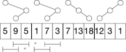 - ↑ a b c d e Fischer, J. and V. Heun: Space-Efficient Preprocessing Schemes for Range Minimum Queries on Static Arrays. In: SIAM J. Comput. 40 (apr). 2011, S. 465–492, doi:10.1137/090779759.
