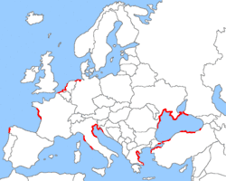 Einige lebende Exemplare wurden auch an der nordatlantischen Küste Frankreichs, an den Küsten Neuseelands und in der Willapa Bay im US-Bundesstaat Washington gefunden.[4][7]