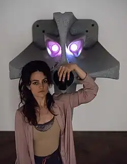 Neben den gefundenen Objekten (wie z. B. Dinosaurier, Urinale, Puppen) nutzt die Künstlerin auch unterschiedliche digitale Technologien (wie z. B. Drohnen, Action-Kameras, Beamer, Scanner) sowie diverse Materialien (wie z. B. Stahlgerüste, Tierhäute/-felle, Plastik/Polyurethan). So entstehen groteske Szenerien, die mal düster, mal träumerisch anmuten. Es sind fragmentarische Erzählungen, die zur Identifikation einladen, dieses Angebot aber im selben Moment gleich wieder entziehen: ein reiches Wechselspiel aus Verführung und Verweigerung, das vielseitige Lesarten zulässt.[1]