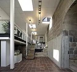 Die alten Mauerreste sollten nicht wieder zugeschüttet werden. In der Folge wurde die Planung geändert und es entstand zusätzlich ein gläserner Verbindungsbau zwischen dem Alt- und Neubau, in dem Grabungsergebnisse und -funde des 8. bis 12. Jahrhunderts, zum Teil in einem eigens dafür hergerichteten Raum, erhalten sind.[7]