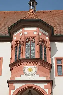 - ↑ Hans Bauer: Die rätselhaften Fenstergewände im Dettelbacher Rathaus. In: Jahrbuch für den Landkreis Kitzingen 2014. Im Bannkreis des Schwanbergs. Dettelbach 2014. S. 16.