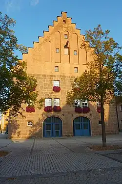 Das Gebäude wurde unter Ludwig IX. von Bayern-Landshut als Kastenhaus errichtet. Seit 1851 wird es als Rathaus genutzt. Besonders bemerkenswert am Sandsteinbau sind die Stufengiebel. Die Ladeluke mit Aufzugsbalken ist noch vorhanden. Besonders sehenswert ist der aus dem 16. Jahrhundert stammende Leuchter des Rathaussaales, das sogenannte Lüsterweibchen.