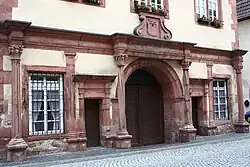 Das dreigeschossige, massive Gebäude mit Volutengiebeln wurde 1598/99 von Michael Imkeller aus Lohr am Main errichtet. Der Spätrenaissancebau besitzt an der südlichen Langseite einen Treppenturm. An der westlichen Straßenseite befindet sich die Portalanlage mit gedrehten Säulen und korinthischen Kapitellen.