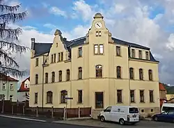 Die wachsende Einwohnerzahl erforderte nach der 1839 erfolgten Bildung einer eigenständigen Gemeindeverwaltung (die zunächst, wie damals üblich, vor allem in den Räumen des jeweiligen Gemeindevorstandes untergebracht war) schließlich den Bau eines eigenständigen Gemeindeamtes. Um 1890[1] entstand ein Gebäude, häufig als Rathaus Gittersee bezeichnet (die entsprechende Querstraße von der Karlsruher Straße aus erhielt daher den Namen Rathausstraße), das die Gemeindeverwaltung und die Kaiserliche Reichspost (im Erdgeschoss des zur Karlsruher Straße parallelen Seitenflügels, später Poststelle, ab 1945 Postamt Dresden A 41) aufnahm sowie im Mansardgeschoss Wohnungen für Gemeindebedienstete enthielt, und bis 1945, der Eingemeindung von Gittersee nach Dresden, nur diesen Zwecken diente.