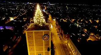 Jedes Jahr wird um die Weihnachtszeit auf der Aussichtsplattform des Turmes ein Weihnachtsbaum aufgestellt. Die Lichter leuchten vom 1. Advent bis einschließlich am Dreikönigstag.