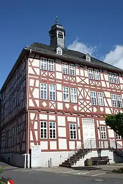 Das Rathaus in Usingen, einer Stadt im Hochtaunuskreis in Hessen, wurde 1687 errichtet. Das Fachwerkhaus an der Wilhelmjstraße 1 ist ein geschütztes Baudenkmal.