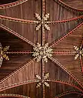 Nach einem Brand 1887 befand sich der Innenbereich des Rathauses in einem schlechten Zustand. Zwischen 1895 und 1905 wurde die Einrichtung gemeinsam von dem Architekten Louis Delacenserie und dem Künstler Jean-Baptiste Bethune restauriert. Der kleine und der große Schöffensaal im Obergeschoss wurden zum gegenwärtigen „gotischen Saal“ zusammengefügt. Die kostbare Verzierung dieses Raums ist der Dekoration der Fassade ebenbürtig. Das imposante doppelte Schirmgewölbe aus Holz wurde restauriert und umfasst den gesamten Saal. Das Gewölbe der beiden östlichen Travéen stammt aus dem 19. Jahrhundert. Die Schlusssteine der Gewölbe enthalten Medaillons und vierlappige Verzierungen mit Abbildungen aus dem Neuen Testament sowie von Propheten, Evangelisten und Heiligen. Die Kragsteine, die das Ensemble unterstützen, wurden mit thematischen Darstellungen der Jahreszeiten, Monate und Naturelemente verziert. An den Wänden hat der Künstler Albrecht De Vriendt Szenen aus der Geschichte von Brügge gemalt. Dabei handelt es sich um zusätzliche Dekorationen im neugotischen Stil, wie auch der monumentale Prunkkamin. Das Steingewölbe aus dem Jahr 1766 in der Halle im Parterre wurde im gleichen Zeitraum durch eine historisierende Holzkonstruktion ersetzt, die von vier kompositen Säulen unterstützt wird, die diesen Saal in zwei Schiffe aufteilen.