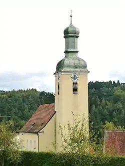 Die Pfarrkirche St. Benedikt wurde 1697 an Stelle einer älteren Kirche unter Verwendung eines spätmittelalterlichen Turms mit Barockaufsatz erbaut. Sie enthält eine geschnitzte Marienstatue von 1500 und eine Sebastiansfigur von ca. 1720.