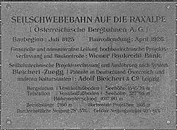 - ↑ Allerlei. Österreich. (…) Der Rax-Bergbahnbau. In: Badener Zeitung, (Nr. 75/1925), 19. September 1925, S. 5, Mitte unten. (online bei ANNO).
