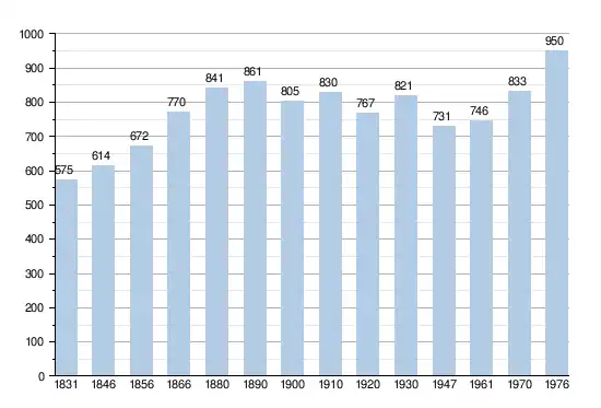 - Quelle: DGS, 1831 à 1970=Volkszählungen, 1976= Einwohner zum 31. Dezember