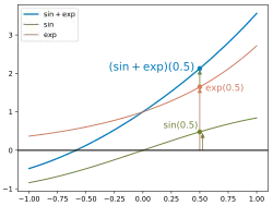 Die Menge aller reellwertigen Funktionen über einer gegebenen Menge bildet einen reellen Vektorraum, der mit , oder bezeichnet wird. Die Summe zweier reellwertiger Funktionen und ist dabei definiert durch