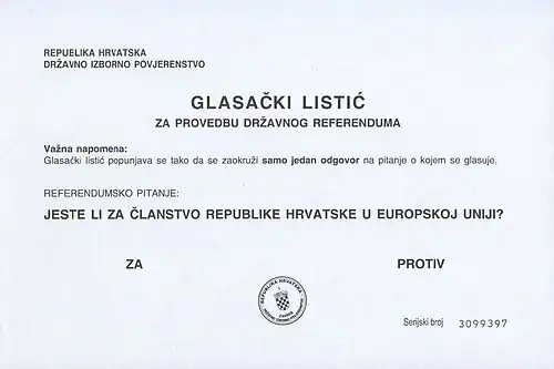 „Sind Sie für die Mitgliedschaft Kroatiens in der Europäischen Union?“