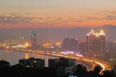 Erstmals seit der Kuomintang-Ära wurde das Land für ausländische Direktinvestitionen geöffnet. Zu diesem Zweck errichtete Deng Sonderwirtschaftszonen in Shenzhen, Zhuhai, Shantou und Xiamen. Diese Regionen erwiesen sich als Wachstumsmotoren für die nationale Wirtschaft. Am 31. Januar 1979 wurde das Industriegebiet Shekou (蛇口工业区) in Shenzhen gegründet, das als erstes Versuchsgebiet in China „geöffnet“ wurde.[20] Unter der Führung von Yuan Geng (袁庚) wurde nach und nach das „Shekou-Modell“ der Entwicklung gebildet, das in seinem berühmten Slogan „Zeit ist Geld, Effizienz ist Leben (时间就是金钱, 效率就是生命)“ verkörpert ist, der sich dann in anderen Teilen Chinas weit verbreitete.[20][21] Im Januar 1984 unternahm Deng Xiaoping seine erste Inspektionstour nach Shenzhen und Zhuhai und lobte die „Shenzhen Speed“ sowie den Erfolg der Sonderwirtschaftszonen.[22][23]