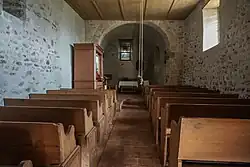Unter dem Tonplattenboden ist eine Fussbodenheizung installiert. Daneben besteht die karge Ausstattung aus alten Holzbänken, in denen etwa 50 Personen Platz finden. Die ersten Schliffscheiben mit Wappen zweier Burgdorfer Schultheissen von 1752 und 1753 befinden sich seit 1880 im Rittersaal in Burgdorf. Seit den dreissiger Jahren sind wieder vier gestiftete Wappenscheiben in den Butzenglasfenstern eingefügt.