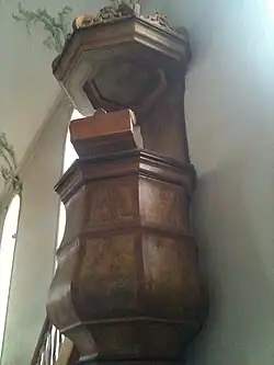 Die hölzerne Bauchkanzel mit kunstvoll geschnitztem Schalldeckel zeigt spätbarocken Stil und stammt vom Kunstschreiner Isaak Hug aus Frauenfeld. Auch der zentral positionierte Taufstein entstand in den Jahren des Kirchenneubaus. Die Decke ist überzogen von grüngefärbten Stuckaturen des Rokoko. Die Stuckateure sind nicht namentlich überliefert, doch gehörten sie offensichtlich zur Schule der Gebrüder Moosbrugger.