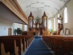 1888 wurde durch die Gebrüder Klingler aus Rorschach eine erste nachreformatorische Orgel eingebaut. Der Kunstschreiner Josef Eigenmann aus Luzern fertigte dazu den neubarocken Prospekt aus Eichenholz. Die Innenrenovation 1969/1970 beliess die Orgel an ihrem Platz im Chor, lagerte sie aber etwas tiefer, um den Blick auf die filigrane Uhr im Chor freizugeben. Unter Beibehaltung des Gehäuses wurde das Orgelwerk ersetzt durch eine Arbeit der Orgelbaufirma Rieger aus Vorarlberg. Dieses Instrument verfügt über 26 Register auf zwei Manualen und Pedal. 2021 erfolgte eine Revision.