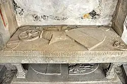 - die einstigen Tischplatten des Ritters Hermann von Hinwil († 1355) und diejenige von