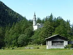 Die Kirche ist ein Bau aus den Jahren 1741–44 auf dem Fundament einer bereits in vorreformatorischer Zeit bezeugten Kapelle. Letztmals restauriert wurde der barocke Sakralbau, der gut 200 Personen Platz bietet, 1972/73.