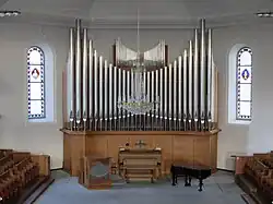 Die spätnazarenischen Farbglasfenster weisen vornehmlich einen ornamentalen Stil auf. Nur die Fenster der Chorflanken zeigen die Jünger Petrus und Johannes und das Mittelfenster über der Empore das Stäfner Wappen, die heilige Verena. Die raumprägende Orgel der Firma Orgelbau Kuhn wurde 1959 installiert und verfügt über einen Freipfeifenprospekt. Das Vorgängerinstrument aus dem Jahre 1892 stammte von der gleichen Firma.