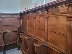 Sieben der dreizehn Sitze des Chorgestühls aus Tannenholz tragen die Jahreszahl 1681. Das heutige Chorfenster stammt aus dem Jahr 1975 und ersetzte ein Fenster von 1899, das heute im Turmaufgang über der Sakristei platziert ist. Im Sandsteinboden des Chors markieren zwei unverfugte Platten den Einstieg in eine gewölbte Grabkammer aus dem 18. Jahrhundert.