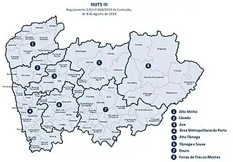Die Region Norte besteht aus acht Subregionen, die als NUTS 3 klassifiziert werden. Die Metropolregion Porto ist mit mehr als 1,7 Millionen Einwohnern die bevölkerungsreichste Subregion der Region und nach der Metropolregion Lissabon die zweitbevölkerungsreichste Subregion des Landes, gefolgt von Cávado mit 438.000 Einwohnern und Ave mit 418.000 Einwohnern. Terras de Trás-os-Montes mit 107.000 Einwohnern und Alto Tâmega mit 84.000 Einwohnern sind die am dünnsten besiedelten Subregionen der Region.