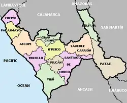 Die Region La Libertad ist in zwölf Provinzen (diese wiederum in 83 Distrikte) unterteilt.