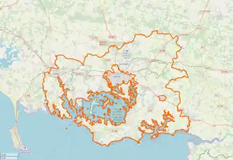 Die so entstandene Landschaft zeichnet sich durch ihre komplexe Struktur aus, in der Land und Meer eng miteinander verwoben sind, wo sich Süß- und Salzwasser zu Brackwasser vermischen und ein Mosaik von Umgebungen entwickeln, die mit den unterschiedlichen Gewässertypen verbunden sind. Weitere Besonderheiten sind eine Küstenlänge von rund 568 Kilometern mit Stränden, Felsküsten, Wattenmeer, Sümpfen und Salzwiesen. Das Wasser spielt eine wesentliche Rolle für die Natur und ihre Attraktivität für Fauna und Flora, aber auch für viele Aktivitäten wie Austernzucht, Fischerei und Freizeitaktivitäten. Sie alle sind auf eine gute Wasserqualität angewiesen. Das Gebiet ist auch für die große Menge an Zugvögeln berühmt, die zu verschiedenen Jahreszeiten hierher pendeln, einerseits aus den nordischen Ländern, andererseits aus den nordafrikanischen Flussdeltas. Das Gebiet beinhaltet auch das Naturschutzgebiet Marais de Séné.[1]