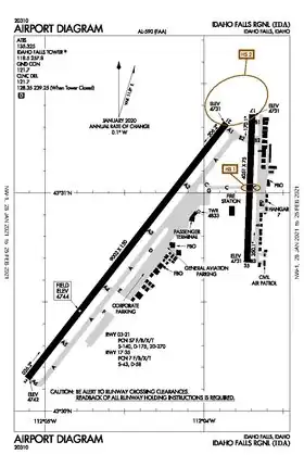 - ↑ a b c IDA Airport Master Record. (PDF) FAA, abgerufen am 24. Oktober 2023 (englisch).