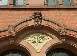 Landeswappen Mecklenburg, Bleiglasfenster im dritten Stock der Reichsbahndirektion Schwerin - Stab für operative Betriebsführung