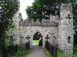 1777 wurde ein nachgemachtes, mittelalterliches Tor über den Ruinen der ursprünglichen Burg errichtet. Eine Inschrift auf der Seite des Tores, auf der einen Seite in Latein und auf der anderen in Englisch, lautet: