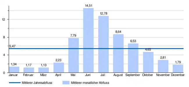 - ↑ Martin Pfaundler, Rolf Weingartner, Robert Diezig: „Versteckt hinter den Mittelwerten“ – die Variabilität des Abflussregimes. In: Hydrologie und Wasserbewirtschaftung (HyWa). Jg. 50, Heft 3, 2006, S. 116–123, hier Tabelle auf S. 119 (Download [PDF; 3,2 MB; abgerufen am 31. August 2020]). Abrufbar unter Gesamtes HyWa Heft 3, 2006..