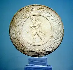 Ein Reliefdiskus im Archäologischen Nationalmuseum Athen (NAMA) mit der Inventarnummer 3635 wird um das Ende des letzten Jahrhunderts v. Chr. oder den Beginn des ersten Jahrhunderts nach der Zeitenwende datiert.