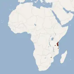 Bergmans nennt Vorkommen[1] aus den Shimba Hills im Südosten Kenias, den Usambara-Bergen und den Nguru Mountains in Tansania, mehreren anderen unveröffentlichten Fundorten in Tansania und aus zwei isolierten Orten im östlichen Simbabwe. Alle Orte, die mit einiger Genauigkeit bekannt sind, befinden sich in Waldflächen oder in undifferenzierter afromontaner Vegetation im ostafrikanischen Sansibar-Inhambane-Küstenwaldmosaik. Der Holotypus wurde am Mukanda-Fluss in den Shimba Hills gesammelt, die von einem Mosaik aus offenen Land- und Waldflächen bedeckt sind. Ara Monadjem konnte die Art im Chuizuia-Wald in Nordmosambik nachweisen.